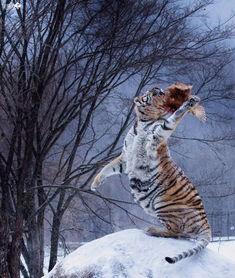 首先,让我们来谈谈这张图片的视觉冲击力。饿虎扑食,这四个字本身就充满了力量感。想象一只威武的猛虎,从远处悄无声息地接近猎物,在猎物毫无防备的情况下,猛地扑过去。这一刻,时间仿佛凝固,所有的力量都集中在那一瞬间。